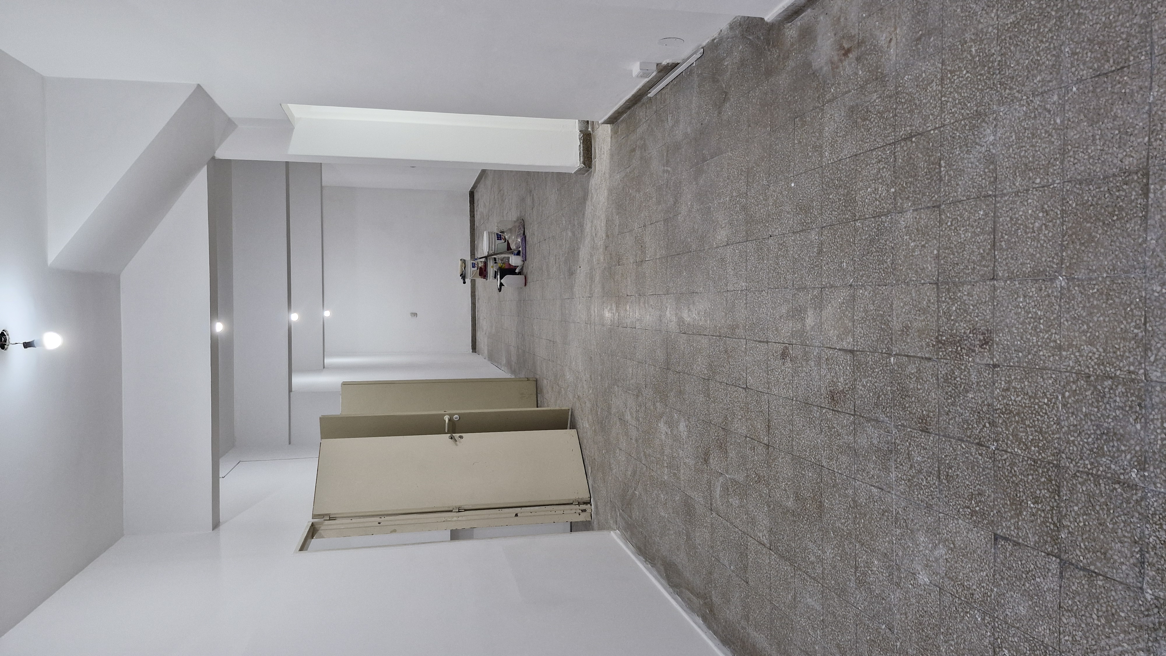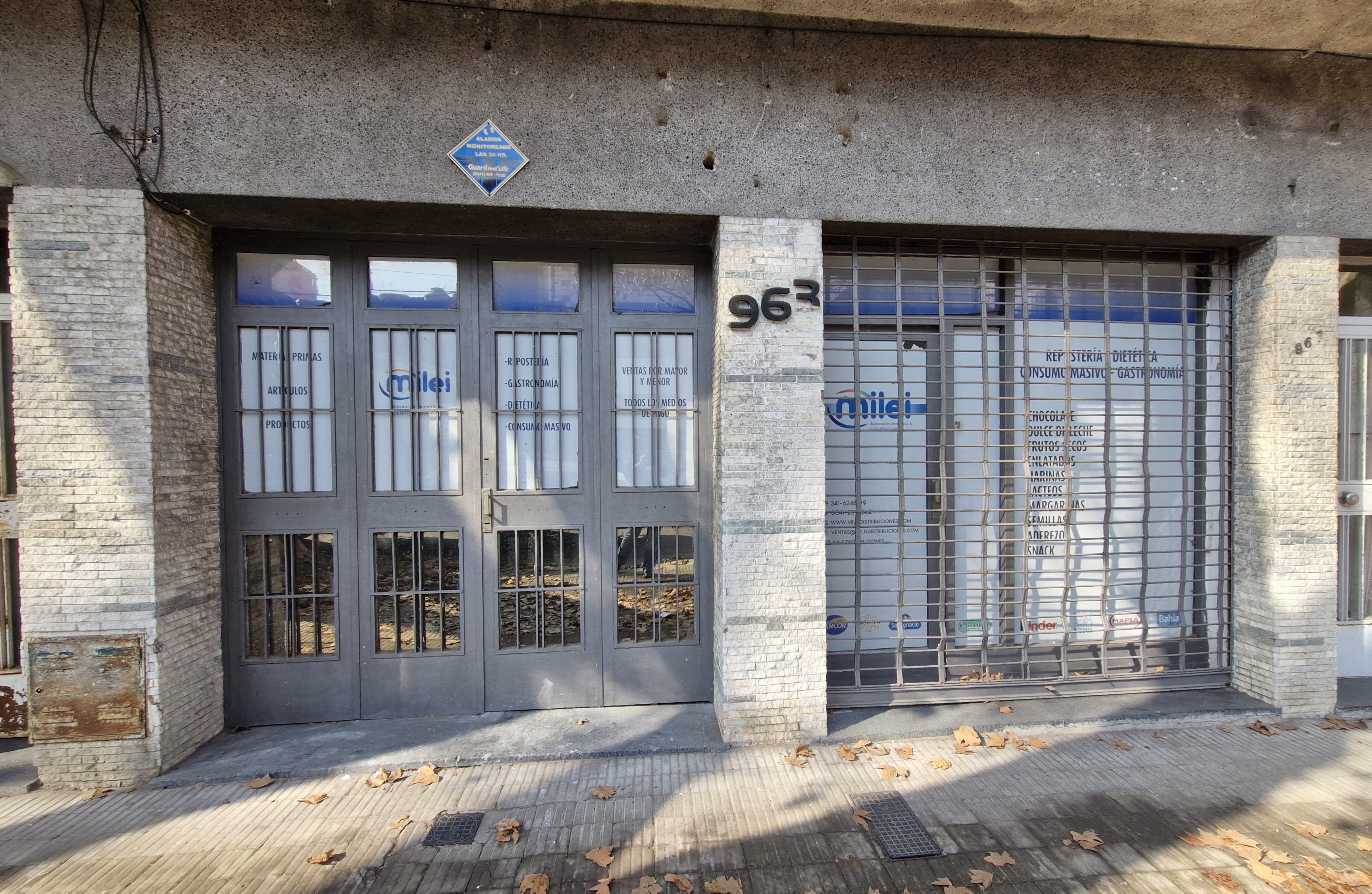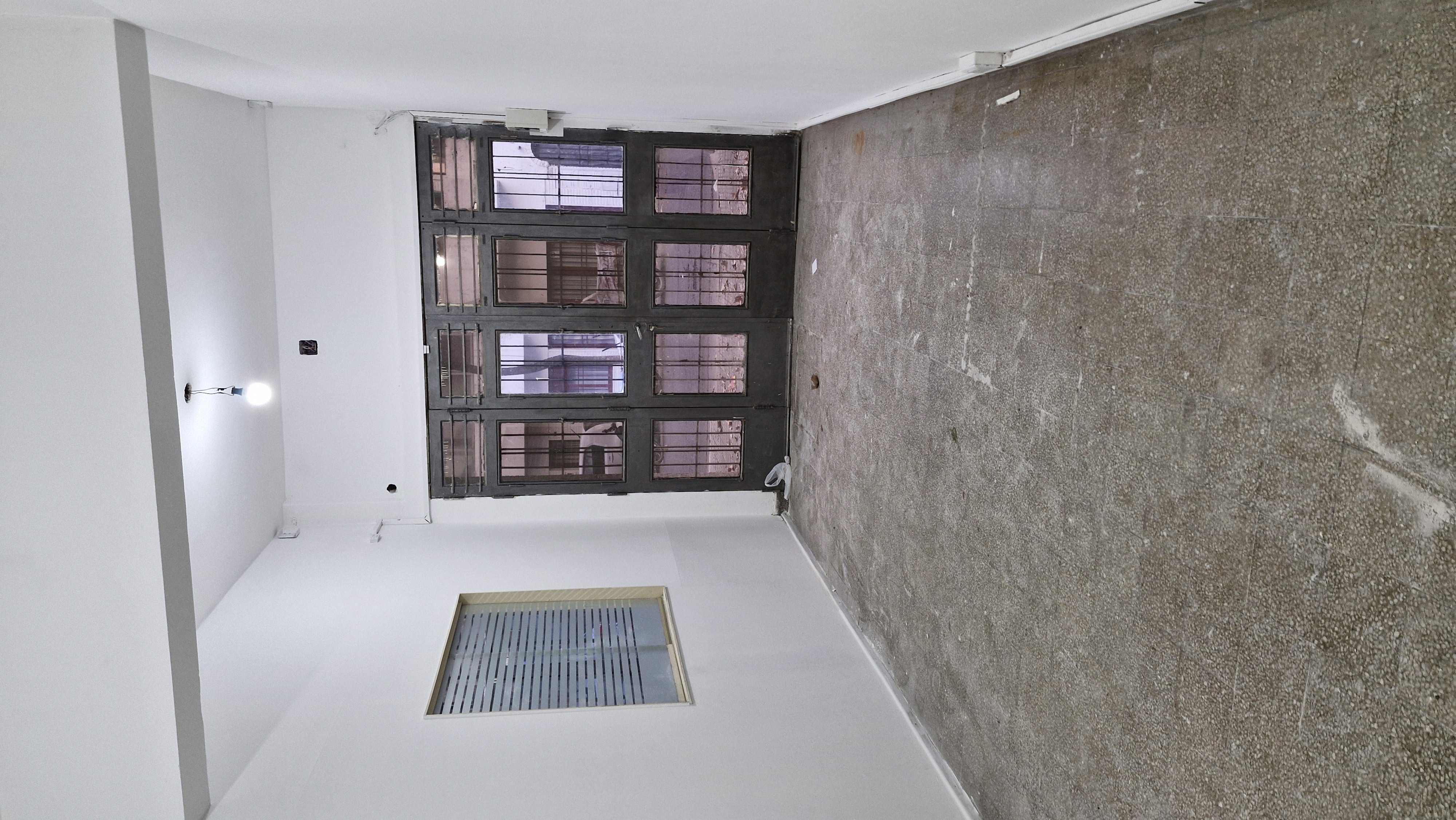 Gran local al frente vidriado en planta baja del edificio de dos pisos, con doble ingreso, por una puerta y por un portón, el salón despejado con divisiones en durloc y dos baños.